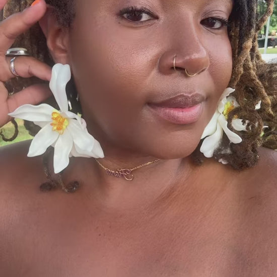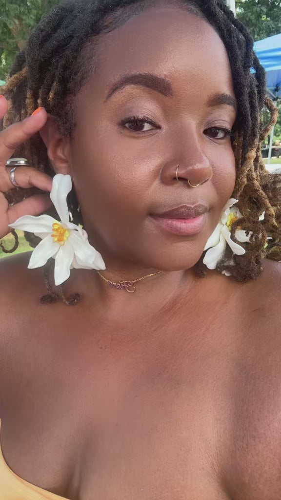These radiant statement earrings bloom with soft ivory petals and a golden-orange center, giving the perfect balance of elegance and boldness. The glossy finish makes them shine from every angle, while the warm floral core adds a vibrant pop of color. Lightweight yet striking, they’re the ultimate showstopper for anyone who loves to stand out with grace and confidence. 🌼💫